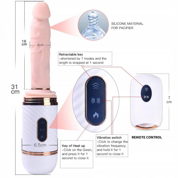 Секс машина с подогревом "Dibe Cyclone Fire" на дистанционном управлении, белый тубус